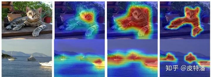 列的值,可以认为是被层层卷积核过滤后而保留的有效信息,其值越大,表明特征越有效,对网络预测结果越重要。一个深层的卷积神经网络,通过层层卷积操作,提取空间和语义信息。一般存在其他更难理解的层,例如分类的全连接层、softmax层等,很难以利用可视化的方式展示出来。所以,CAM的提取一般发生在卷积层,尤其是最后一层卷积。通常每一层的特征图还会有很多层,一般称为channel(通道),例如Resnet18最后一层特征图有512个通道。这512个通道可以认为提取到不同的特征,该特征具有高度抽象性,且每个通道对最后的结果贡献不同,因此单独可视化每个通道获取热图也让人很难理解。所以一般CAM的获取是根据每个通道不同的贡献大小去融合获取一张CAM。