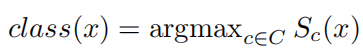 该论文做法是结合smoothGrad来优化CAM效果,首先解释一下smoothGrad。对于分类网络,最终分类类别取决于哪个类别的score最大,公式为: