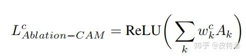 为将特征图第k个channel全部设置为0后,将原始图片再送进网络,获取的c类别的score。二者得分的之差,再除以