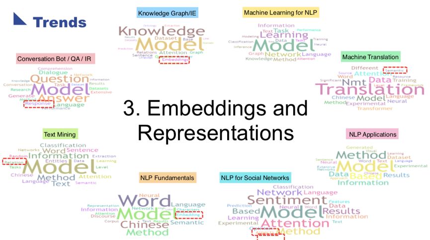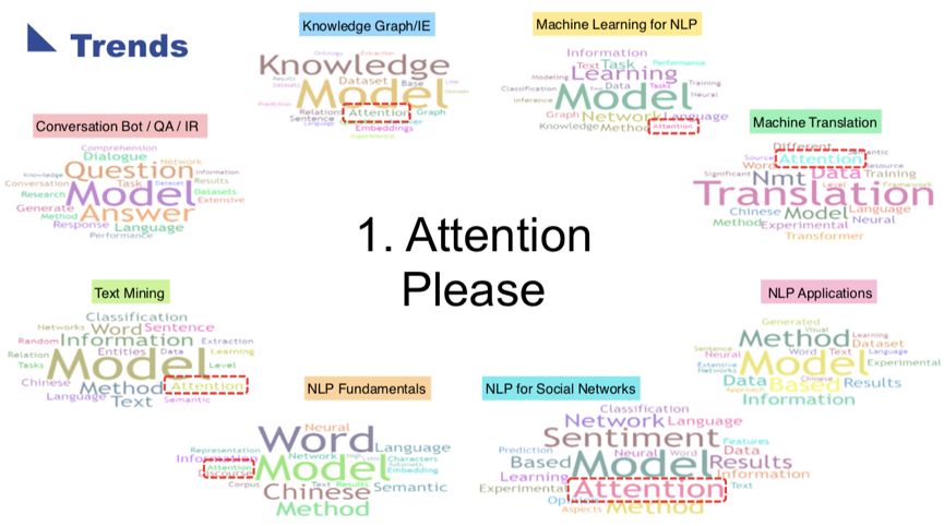 从图中可以看出近段时间,国内NLP的研究趋势分别为: