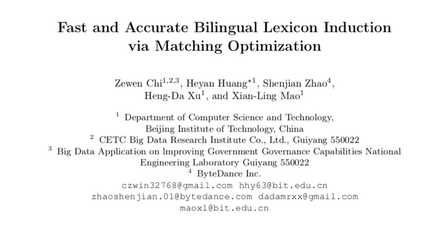 2、Fast and Accurate Bilingual Lexicon Induction via Matching Optimization
