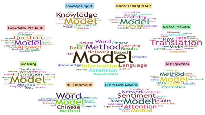 值得一提的是,除了主会论文外,另有workshop投稿50多篇,其中由西湖大学张岳教授和中科院自动化所张家俊研究员组织的student workshop接收了4篇论文,由北大孙薇薇副教授和微软段楠研究员组织的Evaluation workshop 接收了14篇论文,另外Explainable AI workshop接收了9篇论文。