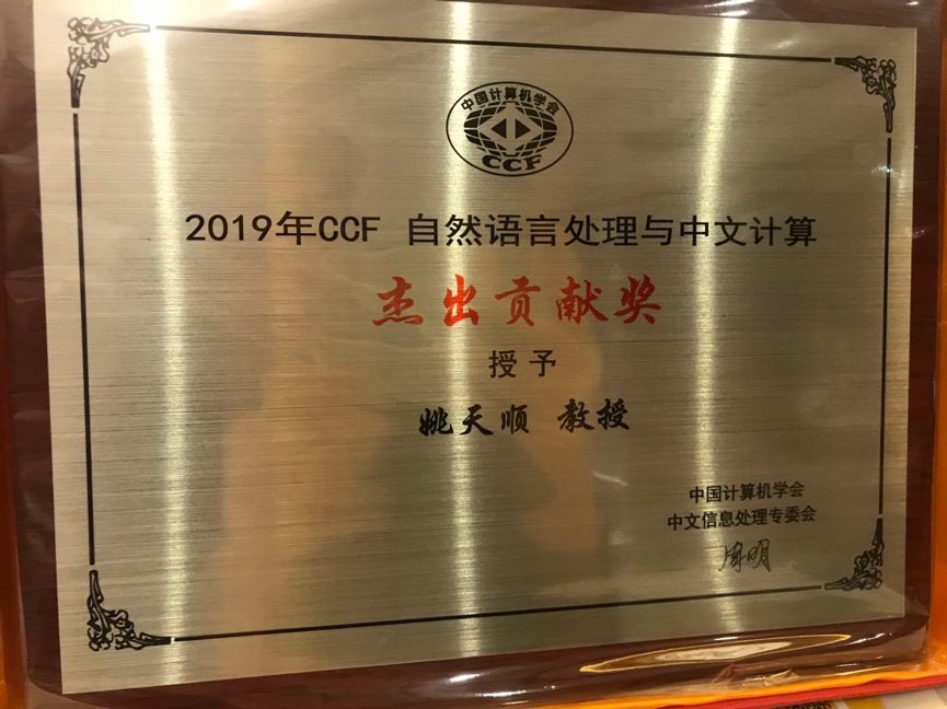 CCF NLPCC 杰出贡献奖是授予给对中国自然语言处理作出极大贡献的个人。本届杰出贡献奖授予给了中国NLP领域的泰斗人物东北大学姚天顺教授。姚教授出生于1934年,是中国NLP领域的第一位博士生导师,从1980年在东北大学创建东北大学自然语言处理实验室至今,培养了一大批知名学者,包括东北大学朱靖波教授、大连理工大学林鸿飞教授、中科院计算所程学旗研究员、李沐博士等,姚氏弟子遍布世界各地,可谓桃李满园。