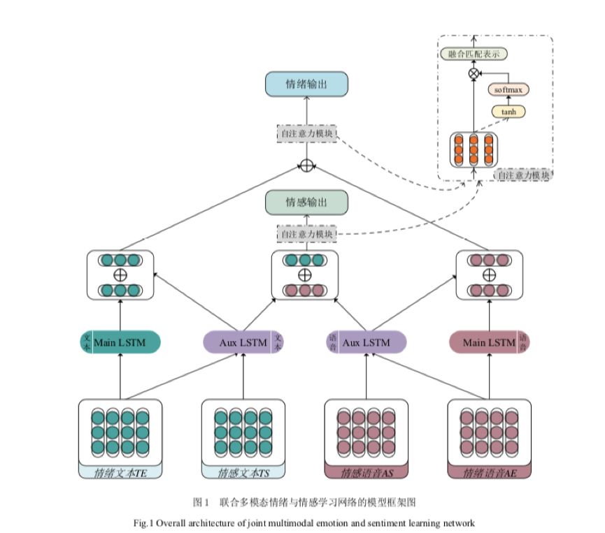 摘要:近年来,多模态情感分析成为自然语言处理的热点研究领域,挖掘多模态内容(如视频和语音等)包含的情绪或情感信息具有十分重要的现实意义。基于多模态特征的情绪分类和情感分类作为情感分析的两个子任务,已有大量工作对两者进行单独研究,但是在多模态领域,还没有相关研究利用情感信息帮助识别说话人的情绪。不同于纯文本的情绪分析,本文面向多模态数据(文本和语音)进行情绪识别研究。为了同时考虑多模态数据特征,我们提出一种新颖的联合学习框架,将多模态情绪分类作为主任务,多模态情感分类作为辅助任务,通过情感信息来辅助提升情绪识别任务的性能。具体而言,通过私有网络层对主任务中的文本和语音模态信息分别进行编码,以学习单个模态内部的情绪独立特征表示。接着,通过辅助任务中的共享网络层来获取主任务的辅助情绪表示以及辅助任务的单模态完整情感表示。在得到主任务的文本和语音辅助情绪表示之后,分别与主任务中的单模态独立特征表示进行结合,得到主任务中单模态情绪信息的完整表示。最后通过自注意力机制捕捉每个任务上的多模态交互特征,得到最终的多模态情绪表示和情感表示。实验结果表明,我们的方法在多模态情感分析数据集上可以通过情感辅助信息大幅度提升情绪分类任务的性能,同时情感分类任务的性能也得到了一定的提升。