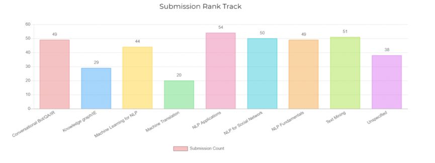 从中可以看出哪些研究方向更为热门。有意思的是,在NLP应用等领域论文投稿论文数量非常多,而像机器翻译、知识图谱等却相对较少。