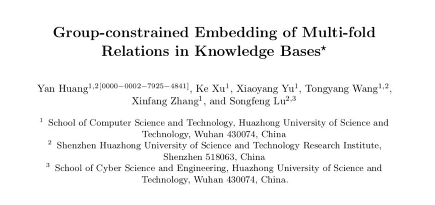 1、Group-constrained Embedding of Multi-fold Relations in Knowledge Bases