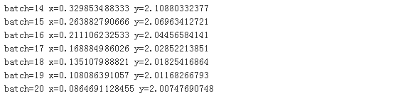 整个迭代过程最多100步,由于我们预先知道函数的最小值为2,所以如果当计算获得的函数值非常接近2,我们也可以提前退出迭代过程,比如绝对值相差不超过0.01。最后果然没让我们失望,在迭代20次后就找到了接近理论上的最小点。