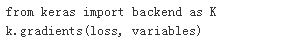 Keras里面提供相应的工具返回loss函数关于variables的梯度,variables为张量变量的列表,这里的loss函数即损失函数。
