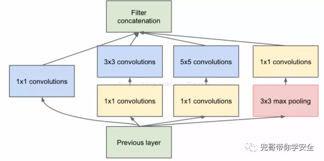 一般的卷积层只是一味增加卷积层的深度,但是在单层上卷积核却只有一种,这样特征提取的功能可能就比较弱。Google增加单层卷积层的宽度,即在单层卷积层上使用不同尺度的卷积核,他们构建了Inception这个基本单元,基本的Inception中有1x1卷积核,3x3卷积核,5x5卷积核还有一个3x3下采样,从而产生了InceptionV1模型。InceptionV3的改进是使用了2层3x3的小卷积核替代了5x5卷积核。