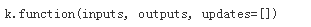 Keras也提供了function用于实例化一个Keras函数,inputs是输入列表列表,其元素为占位符或张量变量,outputs为输出张量的列表