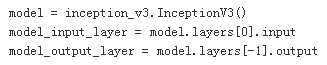 以攻击InceptionV3模型为例,介绍生成攻击样本的基本原理。Keras内置了这个模型,我们直接使用就可以了。从模型中直接获取第一层的输入作为输入层,最后一层的输出为输出层。