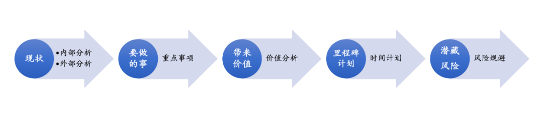 要保证我们规划的成功落地,并能真正带来价值的提升,我们还要考虑这中间可能遇到的问题跟风险,例如:技术实现上的风险、政策上的风险、核心人员上的风险等等。