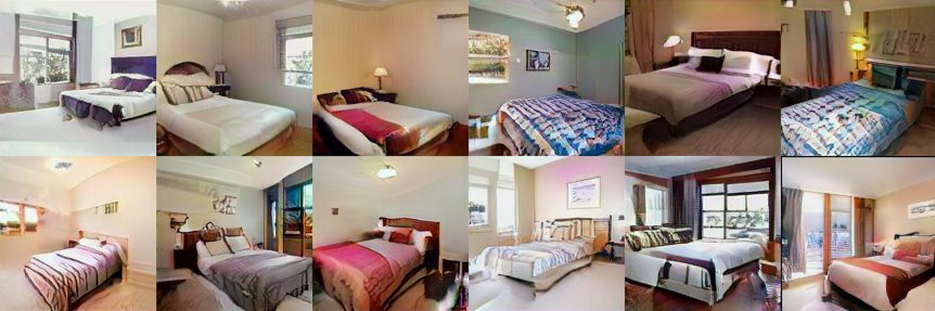 LSUNBEDROOM上训练,生成的256x256卧室图像