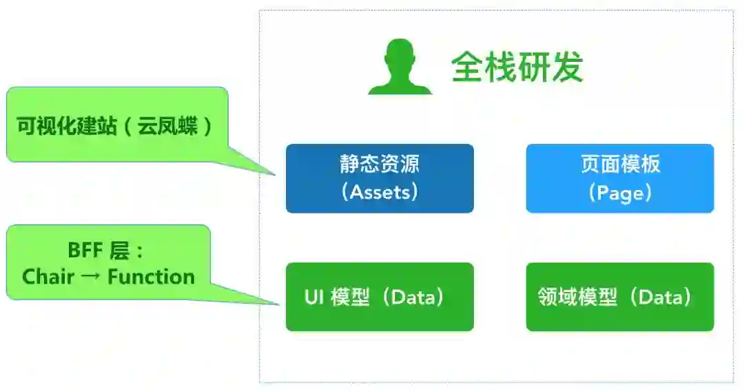 全栈研发,专注于处理 Web 层,比模板层更进一步,接管 BFF 层。