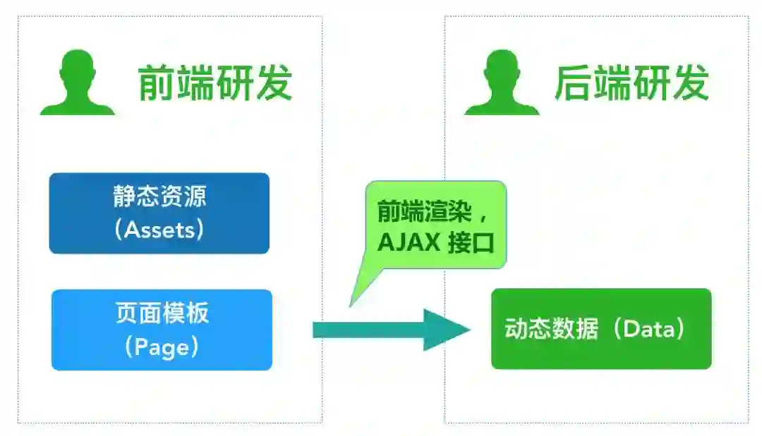 前端通过 AJAX 调用对应的接口,接管模板层,直接在浏览器侧渲染,也称之为前端渲染。