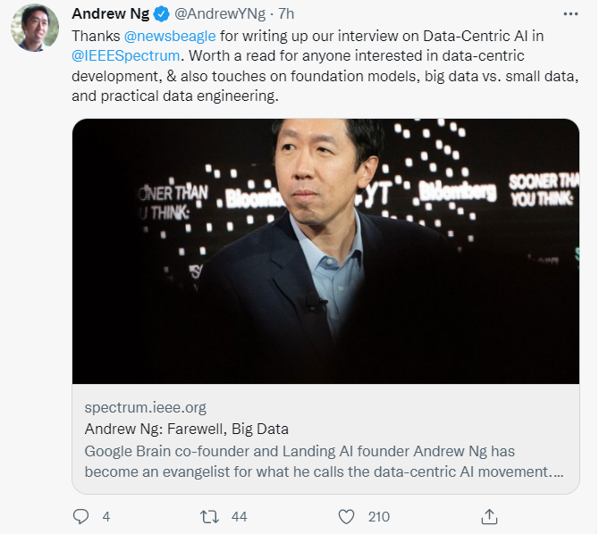 最近,在接受IEEE Spectrum的采访中,他谈到了对基础模型、大数据、小数据以及数据工程的一些感悟,并给出了发起“以数据为中心的AI”运动的原因。