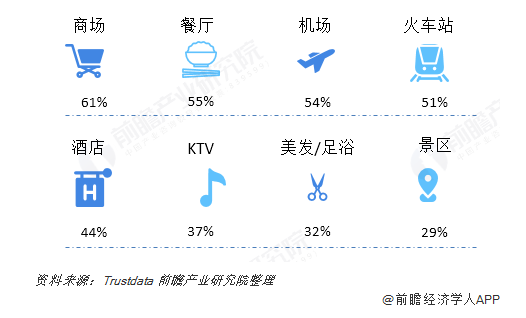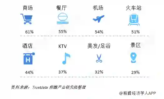 再看场景端,餐厅是美团充电宝的重点投放场景,话语权相对更高,酒店、KTV、美发/足浴也能较多涉及。除此之外,还有商场、机场、火车站等充电宝使用频率高的场景,
