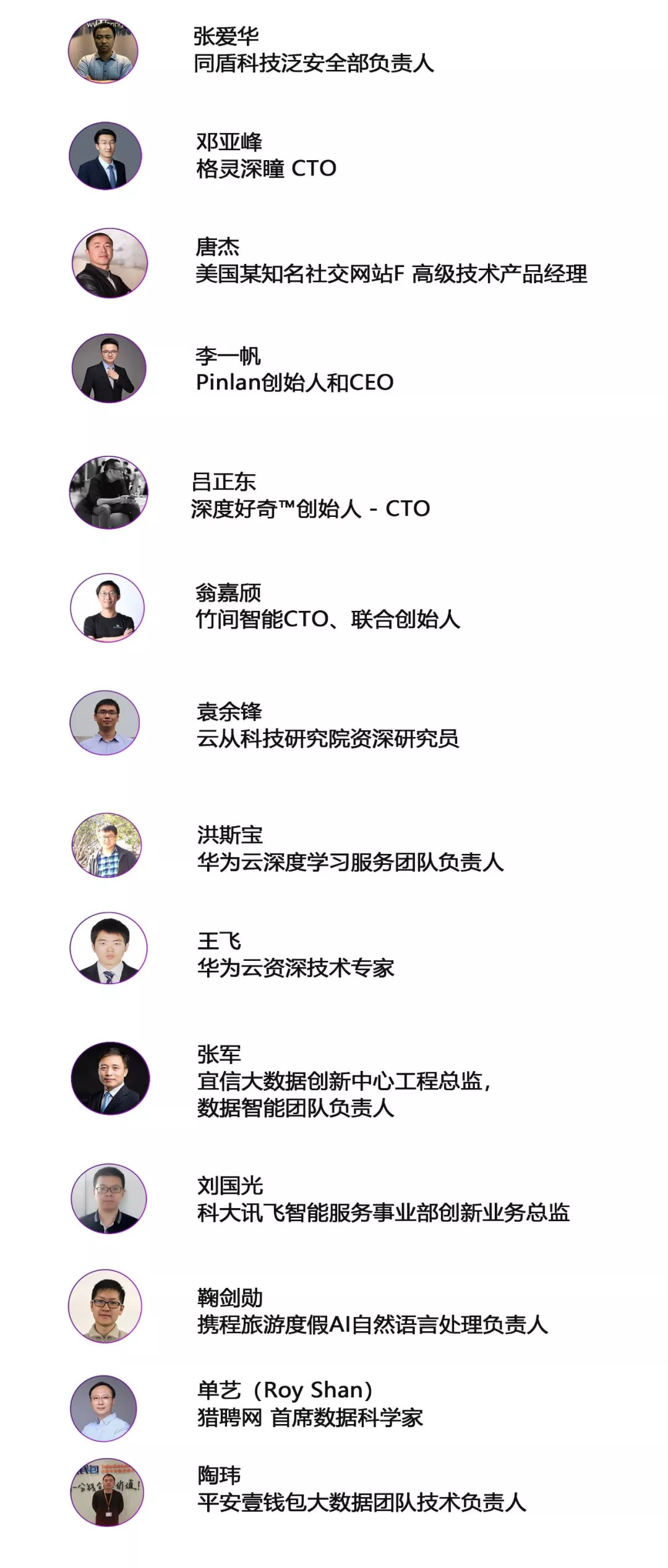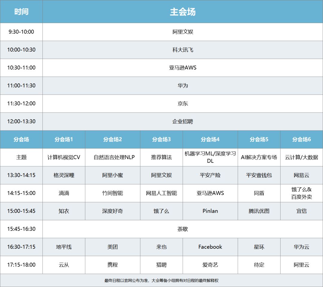 主会场,我们邀请到来自阿里、科大讯飞、亚马逊、华为、京东等人工智能领袖,他们将分享全球最前沿的技术风向,总结自身经验与踩过的坑。