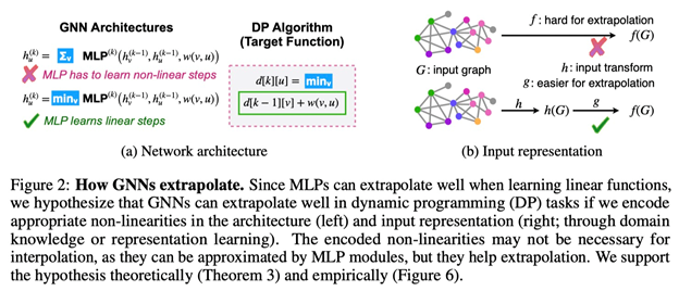 由此推论我们可以得到,在一些图神经网络任务中目标方程分解为线性方程和非线性方程,我们可以先对输入进行非线性操作,多层感知机去拟合线性部分。这样做就可以得到好的外推效果