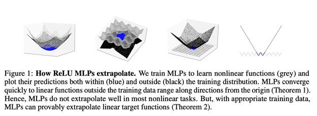 作者发现前馈神经网络在学习简单多项式的时候外推的表现不好,而图神经网络在比训练集大很多的网络上完成有挑战的任务如预测物理系统的演化时间、学习图算法、解决数学问题中表现的很好。作者对这种差别进行深入研究,研究通过基于梯度下降训练的神经网络是如何外推的,它们在训练集之外学到了什么。经过分析,明确了在什么情况下多层感知机和图神经网络可以外推出良好的结果,并且提供了一个假设:外推的成功依赖于对模型架构和输入的非线性编码