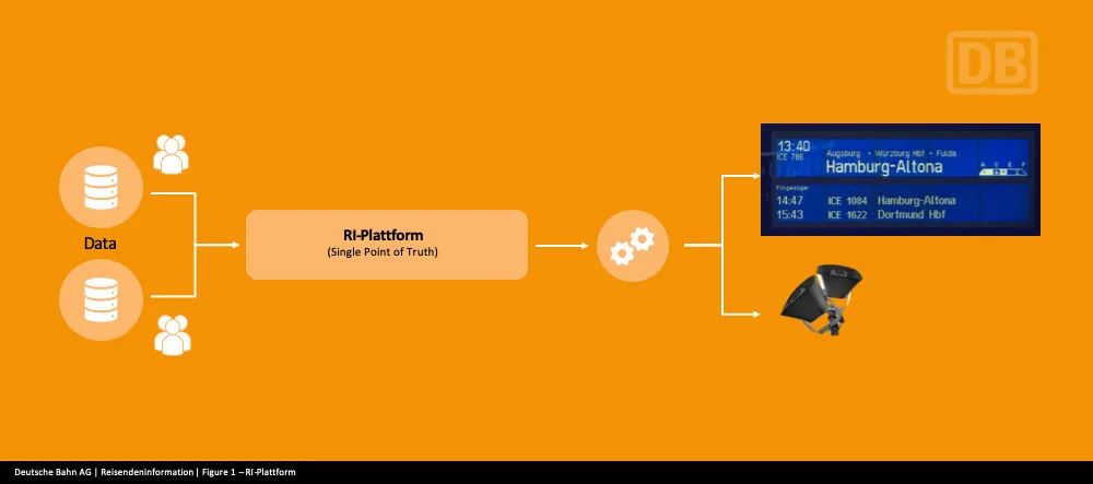 这个例子听上去很简单:通过网站、智能手机和车站的显示屏幕,为旅客提供实时信息和通知,从而提高旅客的出行体验。因为在德国复杂的铁路网络中,车次延误和取消情况时有发生。经常旅行的人都被迫接受,毕竟人们对恶劣天气、技术缺陷等问题无能为力。但是,旅客至少希望得到实时信息和通知,这样他们可以在咖啡馆或休息室里等待,而不必在月台上冻几分钟甚至几个小时。