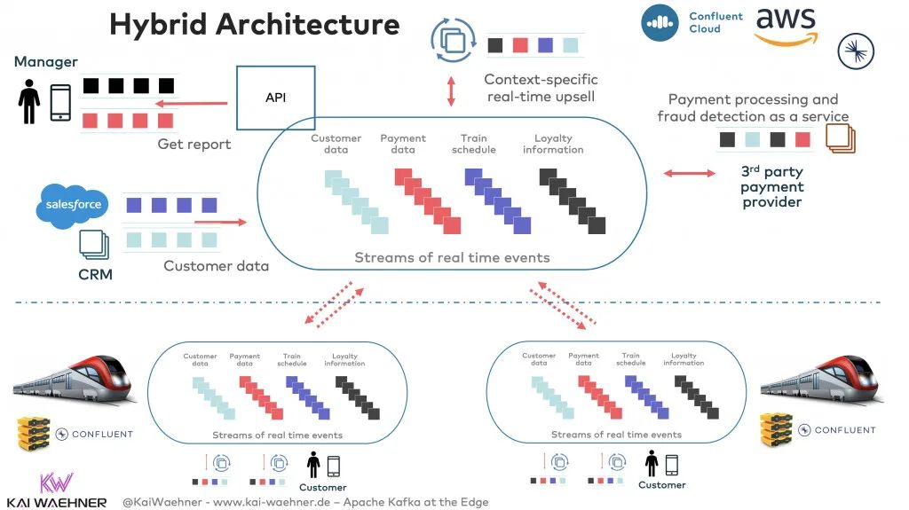 假如在上述德国铁路公司有关的项目(但纯属虚构)中有一种混合架构,包含实时应用程序、云和列车中的边缘计算: