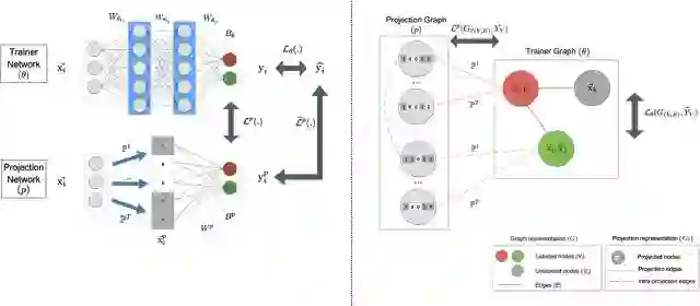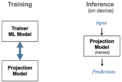用于训练设备上模型的ML架构:使用深度学习训练的ProjectionNet(左)和使用图形学习训练的ProjectionGraph(右)