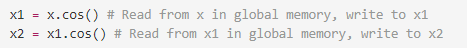 如果换成pyTorch的代码就是把两行代码转为一行x.cos().cos(),效率能够提升两倍。
