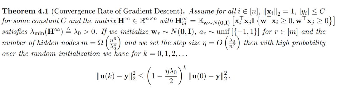 本章展示了具有正常数项步长的随机初始化梯度下降以线性速率收敛到全局最小值。我们首先介绍主要定理: