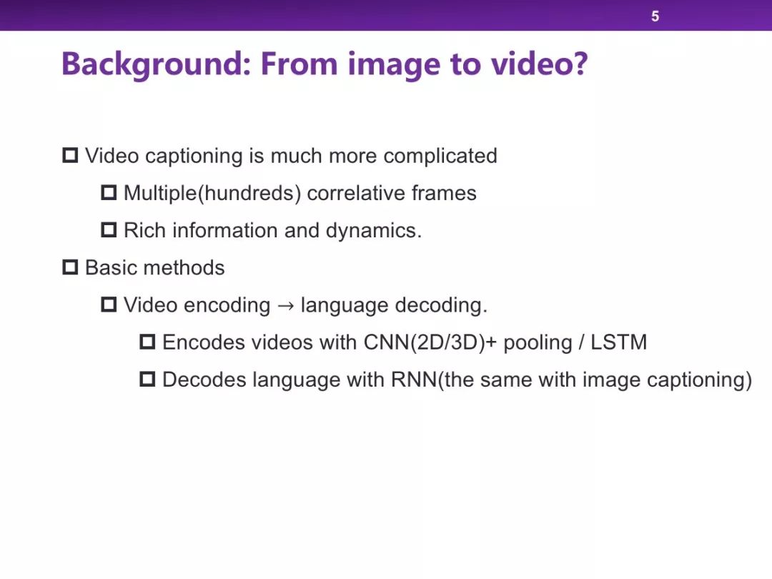 在跨媒体智能方向,视频-文本方向是一个非常重要的领域,其中视频描述生成通过将视频转换成描述视频内容的文本进行二者的交叉理解。本次报告中,我们将简要介绍视频描述生成的基本方法,并给出我们针对密集视频描述生成给出的解决方案。