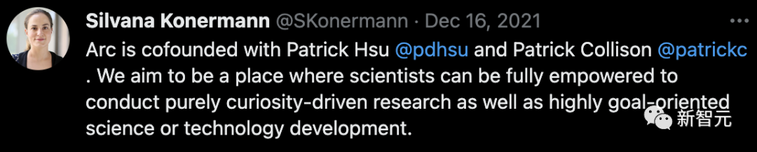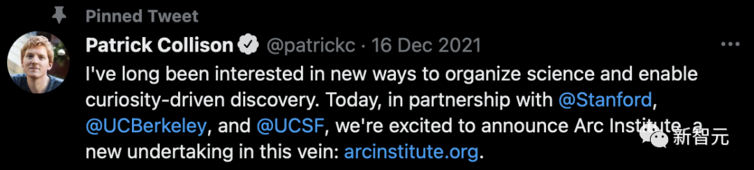2021年12月,Patrick宣布他与Silvana和Patrick Hsu(伯克利大学的助理教授)共同创立了Arc研究所,在加州的三所大学中研究复杂人类疾病的成因。