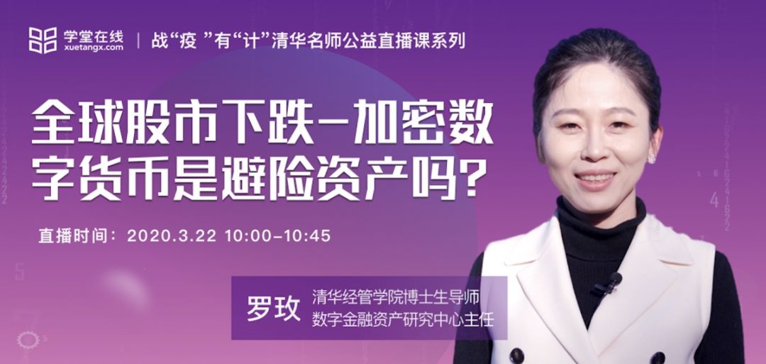 直播介绍:全球宏观经济环境正遭遇新冠疫情的剧烈冲击,国际原油价格大幅下跌,全球主要股票市场大幅下跌,清华大学经济管理学院会计系罗玫教授将为你带来“全球资产暴跌,加密数字货币会是避险资产吗?”专题讲座。
