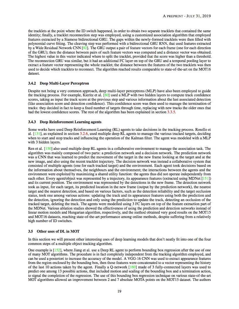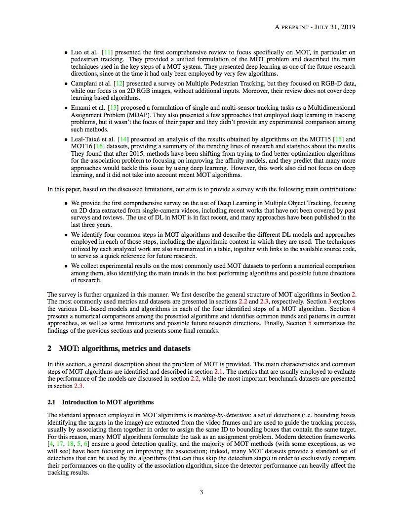 【导读】多目标跟踪(MOT)问题是在一个序列中跟踪不同目标的轨迹,通常是一个视频。本文对采用深度学习模型解决单摄像机视频MOT任务的作品进行了全面的综述。在MOT算法中确定了四个主要步骤,并对每个阶段中如何使用深度学习进行了深入的回顾。本文还对三种MOT Challenge数据集上的研究工作进行了完整的实验比较,找出了一些性能最好的方法之间的相似之处,并提出了一些可能的未来研究方向。