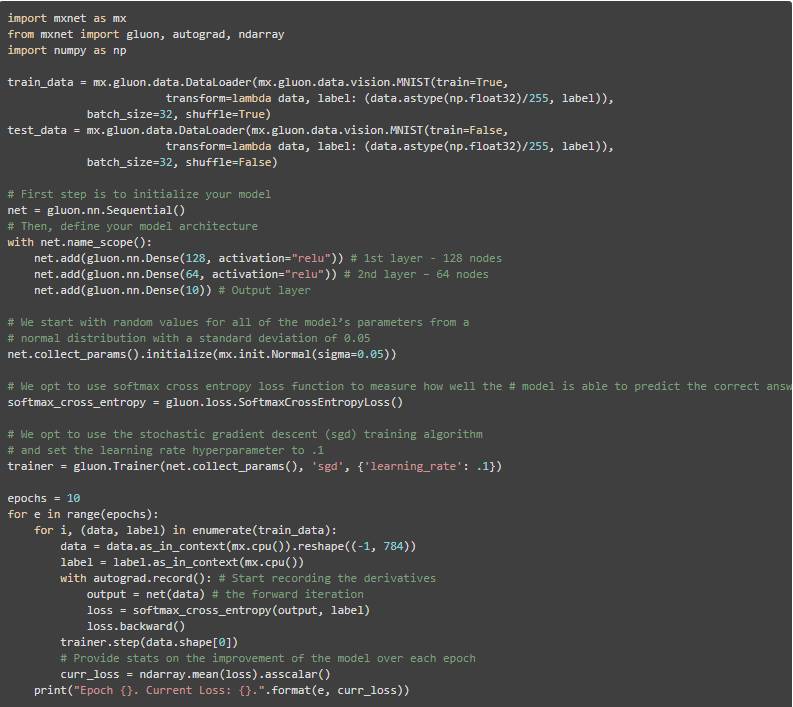 Gluon API 提供了灵活的接口来简化深度学习原型设计、创建、训练以及部署,而且不会牺牲数据训练的速度。
