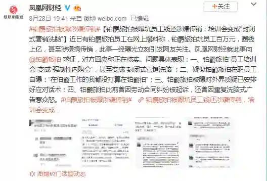 近日有铂爵旅拍员工在网上爆料称,铂爵旅拍坑员工百万元,圈钱上亿,甚至涉嫌传销,此事一经曝光立刻引发网友关注。