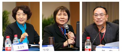 王卫宁秘书长(左)、黄河燕副理事长(中)、刘宏副理事长(右)