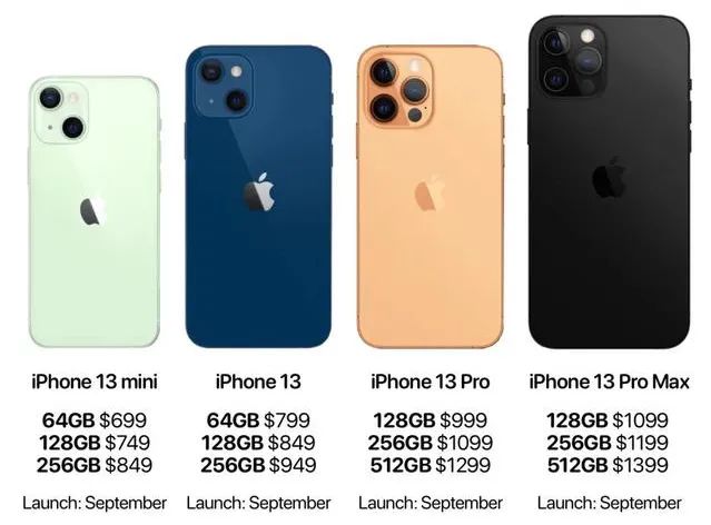1.iPhone 13系列:仍会延续12的设计理念直角的边框,更小的刘海、更大的电池,搭载A15处理器,pro两款机型可以会用上120Hz刷新率屏幕。