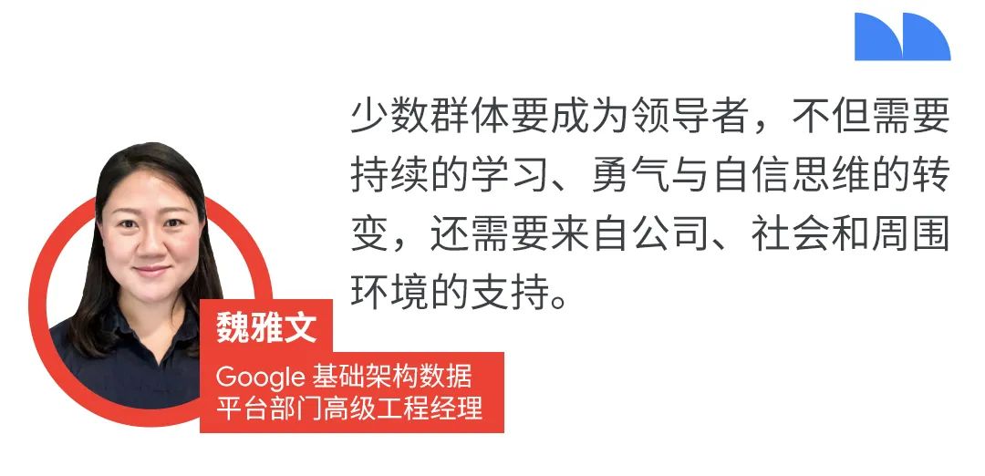 除了上述活动,在 2021 Google 开发者大会上,谷歌围绕合作伙伴的企业发展需求,以“共建多元、平等、包容的职场环境”为主题,Google 战略客户经理张延和大中华区市场研究经理张沄玮分享了 Google 员工在公司内部所进行的多项促进“多元,平等,包容”的社区活动,例如 Google 发起的残障联盟 (Disability Alliance) ,旨在帮助社会上的残障人士获得更清晰的职业发展规划,促进更融合的工作环境。