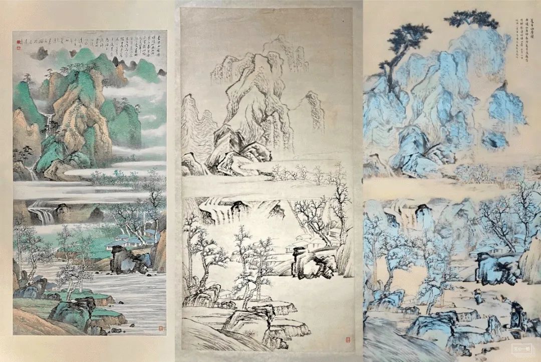 左:乐震文完成稿 中:陆小曼未尽稿 右:百度文心一格完成稿