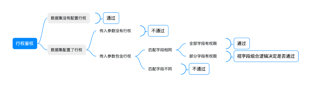1.用户发起查询时,首先判断用户传入的参数中是否包含行权验证的字段,如果不包含则直接抛出异常,提示鉴权失败;
