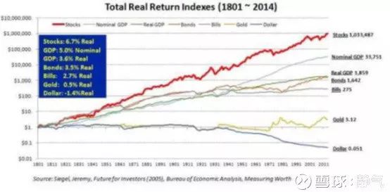 2005年,西格尔在其著作《股市长线法宝》和《投资者的未来》中,用百年的历史统计数字,告诉人们一个结果:企业的股权投资长期回报最高,风险最低;在任何25年的周期中,均远远超过银行存款、债券、房地产、贵金属等带来的回报,而且波动最低。
