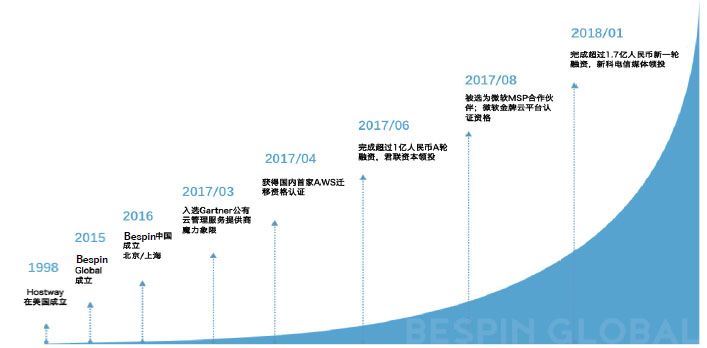 2018年3月15日,云管理服务提供商Bespin Global在北京举行新一轮融资及2018年企业战略发布会。在春节前获得总额超过1.7亿元投资后,向媒体详细介绍融资情况、业务发展及未来规划。