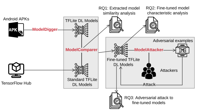 基于前面的分析,我们即可知道移动 App 上的 DL 模型执行的具体任务并且知道其采用的预训练 DL 模型的类型。利用这两个特性,研究者设计了一种