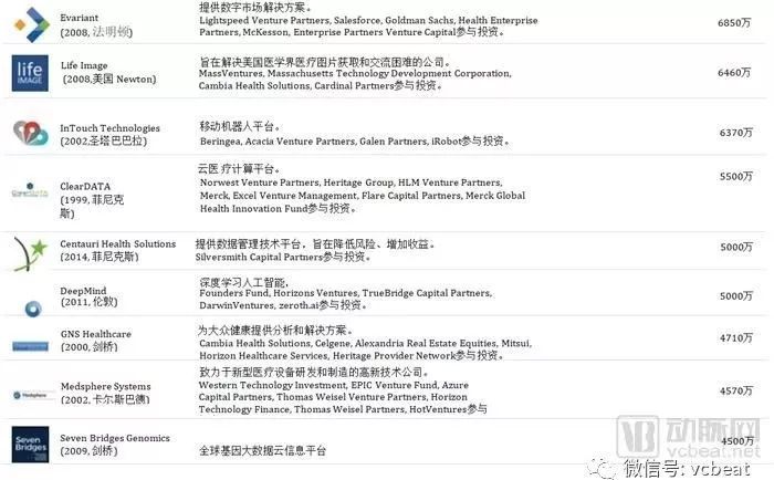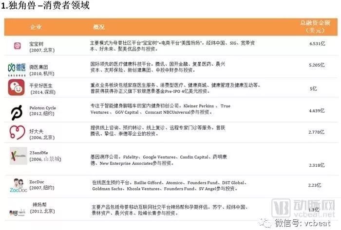 从上表可知,“独角兽”名单中,中国公司包括:宝宝树、微医集团、平安好医生、好大夫、辣妈帮、碳云智能。