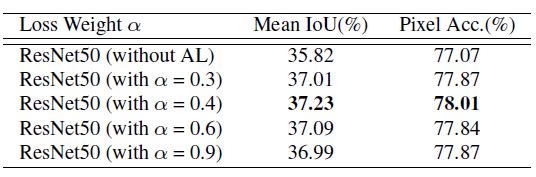 α= 0.4得到最好的性能。因此,使用权重α= 0.4。