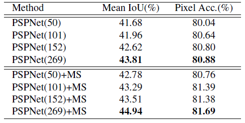 ResNet269+DA+AL+PSP+MS: 同时进行了多尺度测试,取得了较好的效果。