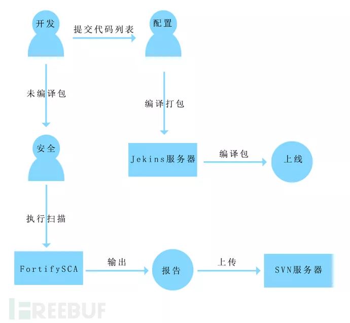 笔者在某甲方运维部负责信息安全,代码审计已经加入到上线流程里面,在没有引入Cobra之前用的是绿色版FortifySCA。公司是Java开发环境,每次上线前都需要开发人员单独把未编译的上线源码打包发送给我,手动执行审计任务,输出报告,上传SVN等一系列操作。
