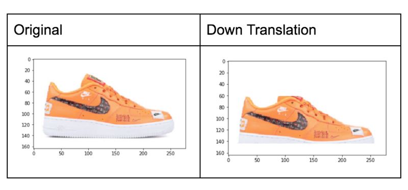 平移增强对检测类分类器有很大价值。 这个分类模型试图检测鞋子何时在图像中而不是在图像中。