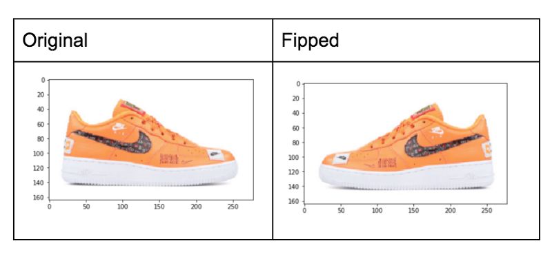 下面的模型可以被认为是看到左鞋而不是右鞋,因此通过这种数据增加,模型对于看到鞋的潜在变化变得更加健壮。