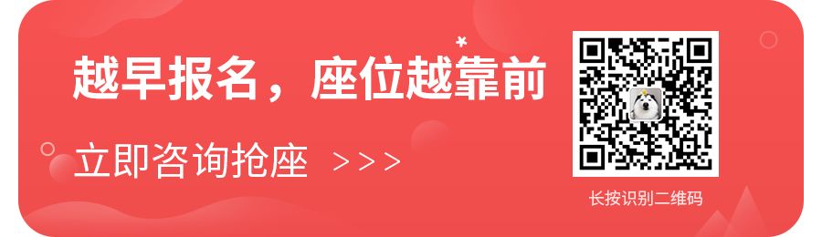 如果你确实存在以上学习的需求,不妨加入我们吧!最近一期上海站,越早报名,座位越靠前,感兴趣不要错过哦!